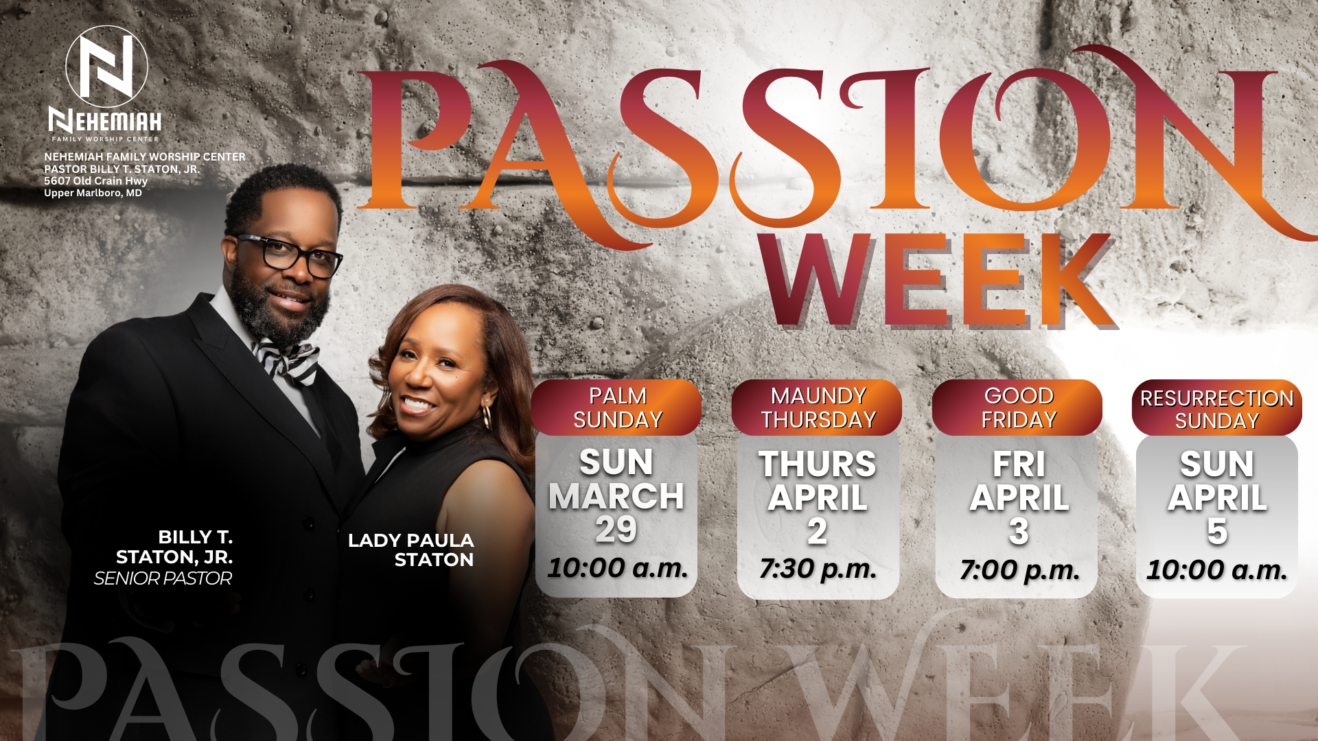 Join us as we journey through Passion Week, a sacred time of reflection on the suffering, sacrifice, and victory of Jesus Christ. Throughout the week, we will gather for moments of worship, prayer, and the Word as we remember the cross and prepare our hearts for the celebration of the resurrection. We invite you and your family to participate in these meaningful services as we reflect on Christ’s love and the power of His redemption.
