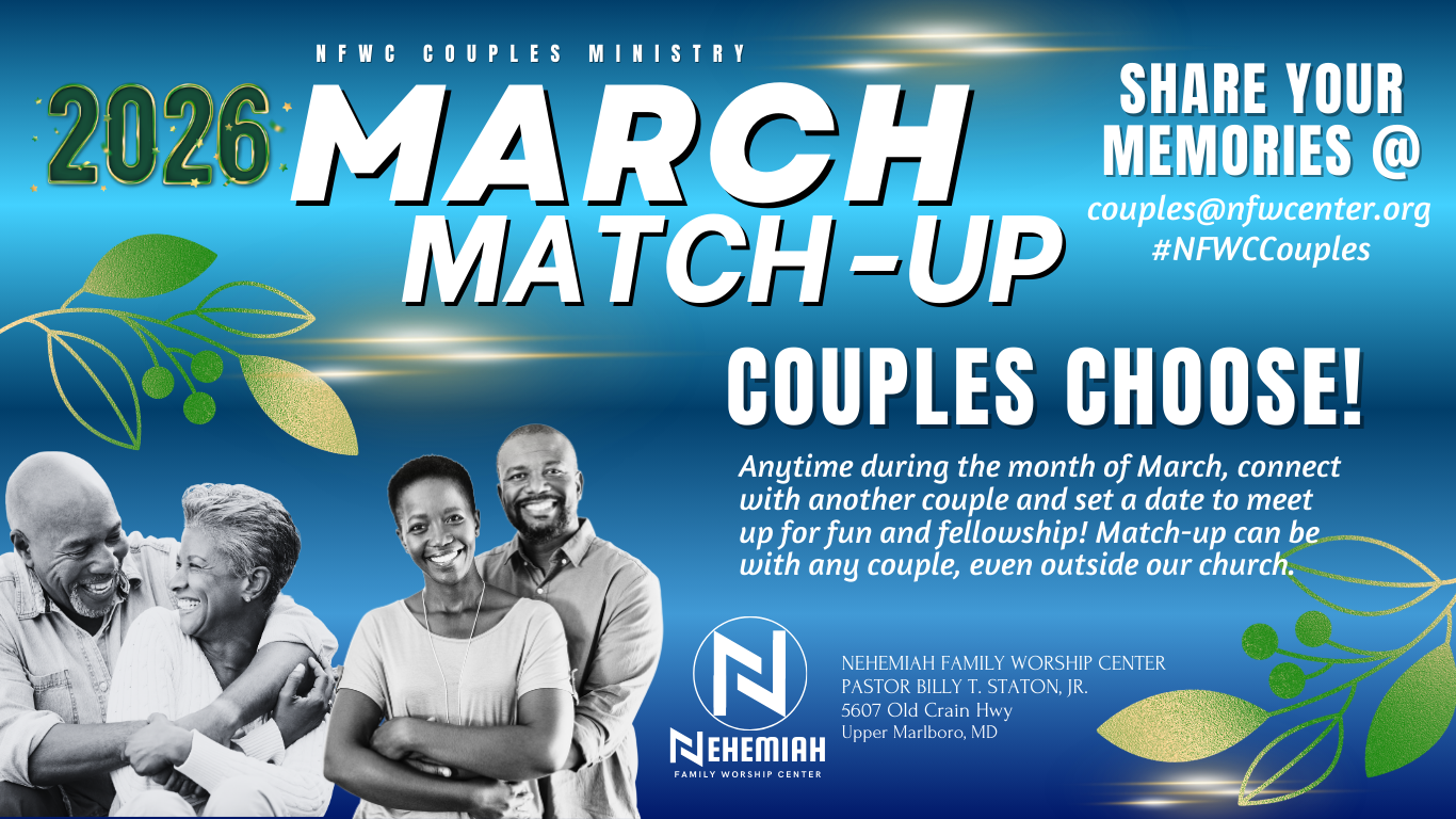 This March 2026, it's all about connection on your own terms! Choose another couple (or couples) and plan a fun outing together anytime during the month of March. Enjoy a great time out, build relationships, and share your memories with us by emailing couples@nfwcenter.org or tagging #NFWCCouples.